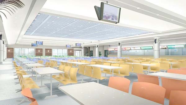 學(xué)校食堂分為四大部分:廚房、就餐大廳、買餐窗、附屬小賣部和辦公室。其中,就餐大廳占用大部分建筑面積,其次是廚房。一般學(xué)校食堂大樓不會(huì)蓋太高,食堂設(shè)置一般不超過第三層,目的是方便師生就餐不至于太累,方便廚房物流配置,而且因?yàn)槠鋯螌诱加妹娣e大,建筑成本高所以不宜建設(shè)高層樓。