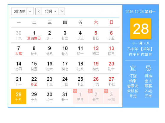 今天是2015年12月28日,星期一。也是2015年的最后一周。