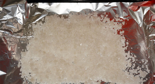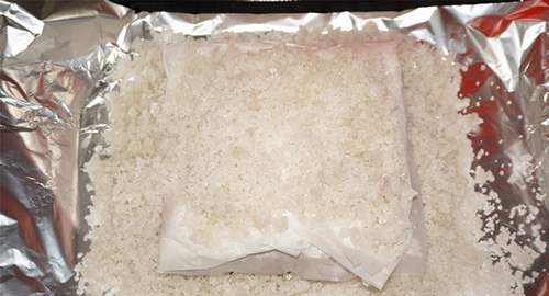 4、盛物盤上鋪上一張大的錫紙,然后鋪上一層粗鹽;
