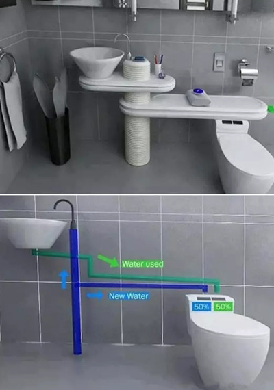 平常在衛生間洗手盆用過的水還能直接沖馬桶,這樣真的節省很多水呢!