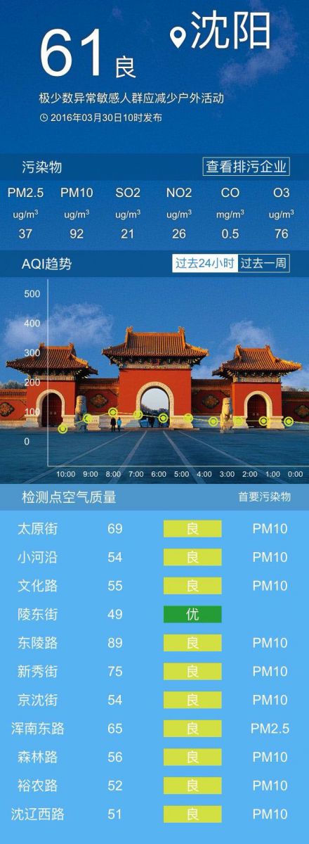 接下來共同關(guān)注沈陽未來幾天的具體天氣情況:今天白天天氣晴朗,休息的時候到室外曬曬太陽,還是很舒服的,白天的最高氣溫在15℃上下,西南風(fēng)3-4級,空氣質(zhì)量良;夜間的最低氣溫在4℃上下。