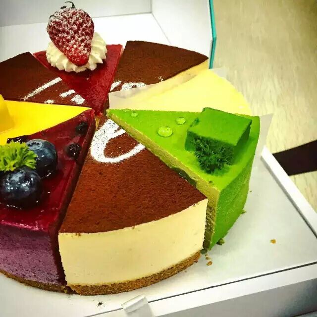 樹莓慕斯+藍莓慕斯+抹茶乳酪+巧克力百香果+提拉米蘇+重乳酪