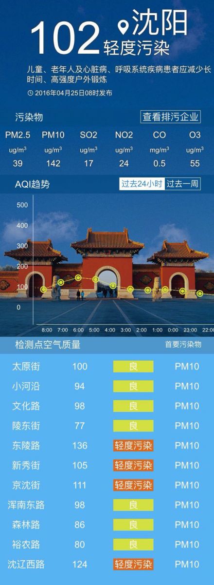 接下來共同關注沈陽未來幾天的具體天氣情況:今天白天大部分地區以晴為主,今天風力不大,北風3-4級,空氣質量輕度污染,最高氣溫20℃左右;今天夜間北部地區將是小陣雨天氣,最低氣溫6℃左右。