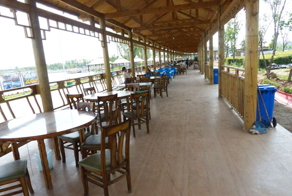 綠廊一號西邊挨著五里河公園,南邊就是渾河,綠化景色非常美。自助燒烤區是園區里的一塊地,中間空場有二、三十張桌子,近十個長亭,每張桌能坐十幾個人。