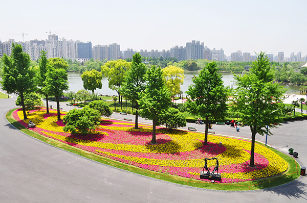 在炎熱的夏天里,城市的綠化帶為人們增添了一絲絲清涼。