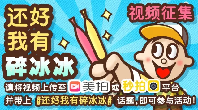 2.活動規則:在美拍或者秒拍上傳以#還好我有碎冰冰#為主題的短視頻并帶上#還好我有碎冰冰#話題即可參與活動,旺仔將選出最有創意的前3名及10名優秀作品。