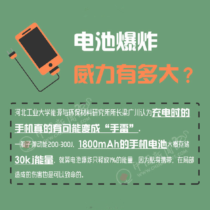 目前,韓國三星Note 7在國內已發生20起過熱、燃燒事故,11日,三星宣布在中國大陸召回19萬臺Note 7手機。每天與我們形影不離的手機竟然有可能是個"定時炸彈"?那么如何避免這種危險,什么情況下手機會爆炸?爆炸后的威力有多大?如何避免?