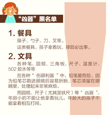 日前,一3歲男孩在拿金屬筷子玩時從椅子上跌落,筷子插進臉頰。送醫途中,父母為拔不拔筷起了爭執。所幸在媽媽堅持下沒拔,除了插穿鼻竇,沒造成其他傷害。醫生:如貿然拔出,可能引發二次傷害。傷娃"兇器"黑名單。