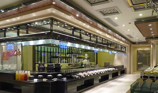 明檔相當于菜譜,因此擺放上必須為營銷而服務。為使明檔更具吸引力,可以適當創造新鮮感和食欲感,單個菜品可以擺成特殊的造形,給顧客帶來新奇的感覺,增強點菜的欲望;用燈光直射樣品,使其清晰明亮。這樣,鮮活的食材,協調的燈光,特別的形狀,整齊的擺放,既吸引客人的視線,又激發他們的食欲。