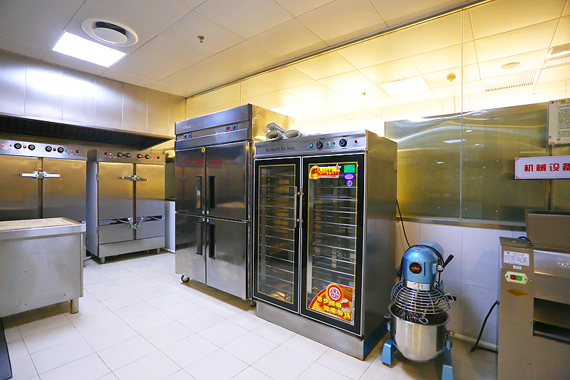 有一些設備必不可少,可以通過改變型號、縮小設備尺寸節省一部分空間。例如,工作臺、灶臺可以選用外形尺寸稍小的型號。