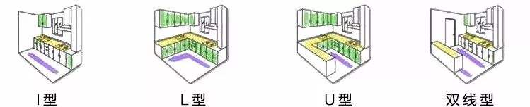 廚房布局的類型應依據結構、面積、高度以及廚房設備的具體規格進行,有以下幾種類型可供參: