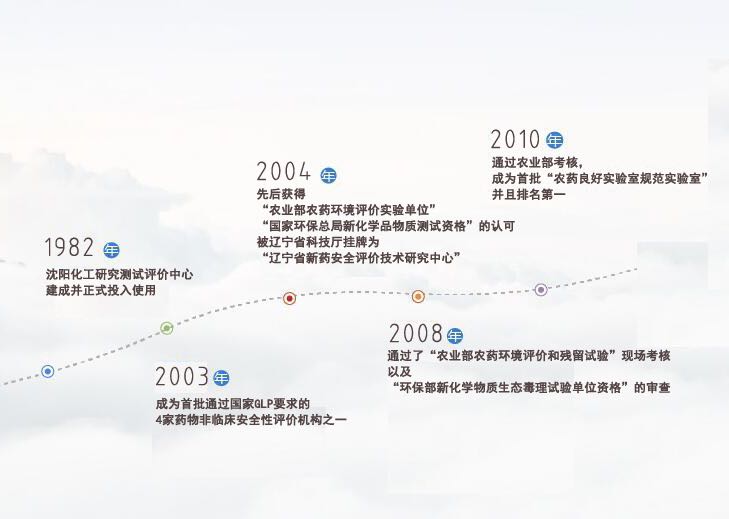2004年,先后獲得了"農業部農藥環境評價實驗單位"、"國家環保總局新化學品物質測試資格"的認可,并被遼寧省科技廳掛牌為"遼寧省新藥安全評價技術研究中心";
