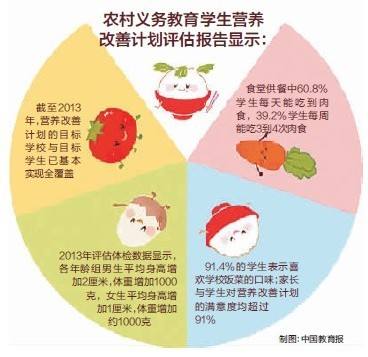 自該《意見》頒發(fā)以來我國積極在全國范圍內(nèi)實(shí)施農(nóng)村義務(wù)教育學(xué)生營養(yǎng)餐試點(diǎn)學(xué)校項(xiàng)目,為學(xué)校增添了蒸飯車、電熱灶、消毒柜等食堂設(shè)施設(shè)備,給各實(shí)施學(xué)校配備牛奶加熱箱、滅蠅燈、溫度濕度計(jì)、消毒燈、保鮮柜等,配齊食堂設(shè)施設(shè)備。目前農(nóng)村義務(wù)教育學(xué)生營養(yǎng)改善計(jì)劃已覆蓋所有國家級貧困縣,全國已有上千所農(nóng)村貧困學(xué)校,能夠?yàn)閷W(xué)生供應(yīng)熱食正餐,讓3700萬名農(nóng)村學(xué)生受益,營養(yǎng)健康狀況得到顯著改善 。