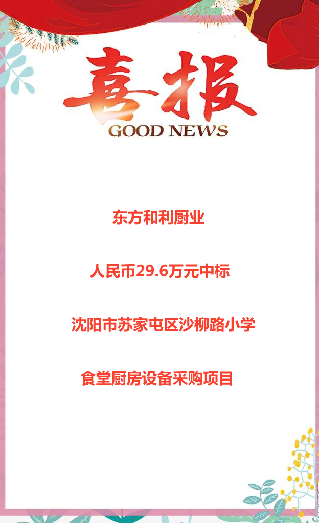 喜報:東方和利廚業中標蘇家屯沙柳路小學食堂廚房設備采購項目