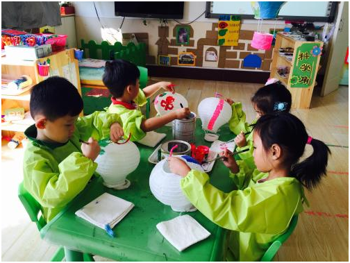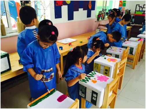 在活動整合上,打破領域間的壁壘,讓美術活動的觸角伸展到各個領域,成為領域整合的紐帶。如美術活動中的"創意繪本"、"伴我成長連環畫"、"小小加工廠"等內容,將美術巧妙的同語言、社會、健康等領域結合,讓孩子們在均衡發展的同時體味到成功的快樂。