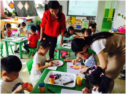 在活動項目上,強化原有畫、折、制作等內容,并新增欣賞、水墨、色彩、線描、沙畫等內容,每種內容又結合實際進行專項的學習與研討,讓教師們明確每種活動的目標是什么,該如何高效的進行。