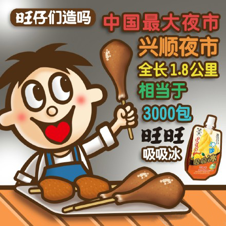 除了愛運(yùn)動(dòng),旺仔君的另一個(gè)愛好就是美食。想知道中國(guó)最大的夜市在哪個(gè)城市嗎?答案是沈陽(yáng)市鐵西區(qū)興順街的興順夜市,北起建設(shè)大路,南至沈陽(yáng)工業(yè)大學(xué),全長(zhǎng)約1.8公里,一期共設(shè)有攤位594個(gè)。興順夜市的營(yíng)業(yè)時(shí)間是17時(shí)30分至23時(shí)。它的長(zhǎng)度相當(dāng)于3000包旺旺吸吸冰。旺粉有去過(guò)哪些美食街?最喜歡的美食是?