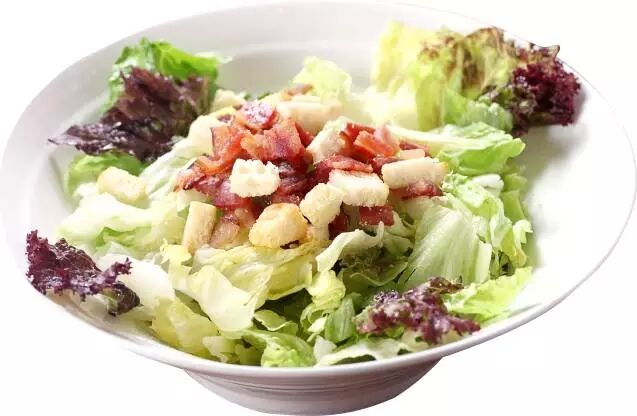 新鮮營養的球生菜和凱撒沙拉羅沙紅、西班牙菜,搭配香脆薄脆和鮮美培根,并配以凱撒沙拉醬,爽脆可口,營養豐富。