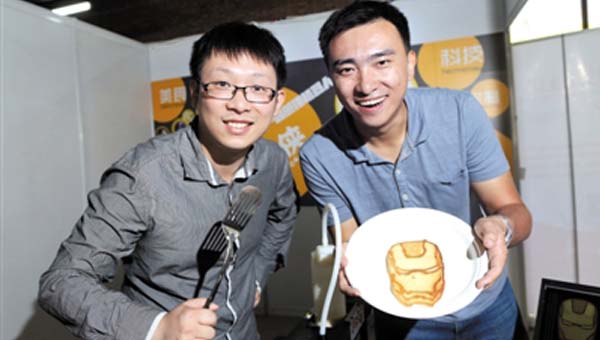 "小飛俠"3D煎餅打印機(jī)創(chuàng)始人施侃樂(左)與吳一黎(右)。