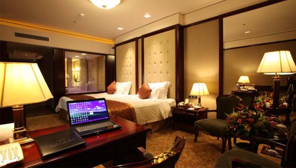 賓館由A、B座兩棟樓組成,擁有各類客房179間。設有無煙樓層和行政樓層。客房寬敞舒適,典雅時尚。 餐廳擁有風格各異、規(guī)格不等的中餐廳、咖啡廳、日式餐廳及各類宴會廳19間,可提供遼菜、粵菜、川菜、日式料理、西餐以及特色滿族美食等。
