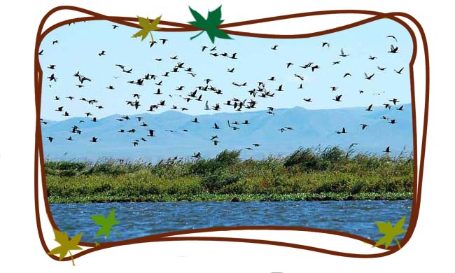 "沈陽鳥島秋季層林盡染,剛剛長大的鴻雁跟在母親的后面,在鋪滿金黃色樹葉的地面蹣跚搖擺。"濕地面積約10萬平方米,是野生動物,特別是游禽、涉禽及濱岸鳥類和雀形目鳥類的主要棲息地。