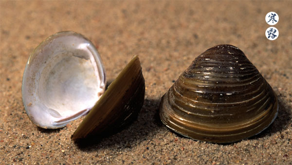 二候,雀入大水為蛤,深秋天寒,雀鳥都不見了,古人看到海邊突然出現很多蛤蜊,并且貝殼的條紋及顏色與雀鳥很相似,所以便以為是雀鳥變成的。