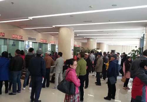 繳費現場在等待交費的市民很多,由于繳費大廳已經人滿為患,不少人只能在室外等待。