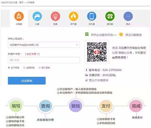 1、通過"熱付通-沈陽市供熱行業便民繳費平臺"跨行網銀及微信掃碼支付。