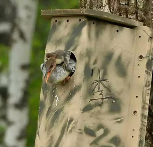 John Bradburn先生在通用汽車主要負責廢舊物再利用項目。在得知中華秋沙鴨的生存困境之后,他聯(lián)合濕地國際北亞區(qū)協(xié)調(diào)員Diana Solovyeva博士將廢舊的雪佛蘭Volt沃藍達電池組外殼改造成了一款愛心巢箱,該巢箱還設(shè)置了一個額外的虎口逃生通道,方便中華秋沙鴨快速脫險。