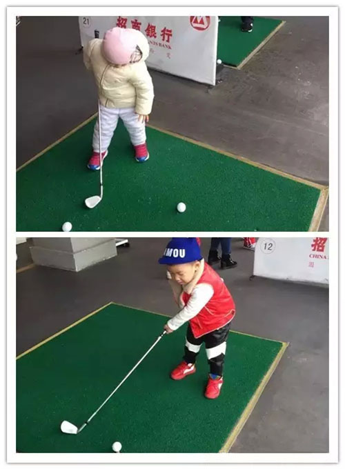 寶貝們已經可以獨立打高爾夫球了,一舉一動真的很標準呢!