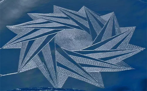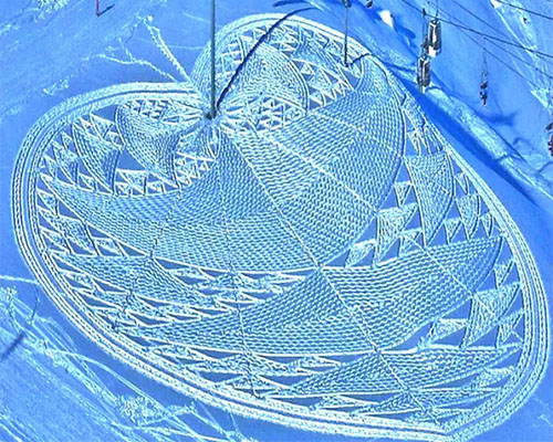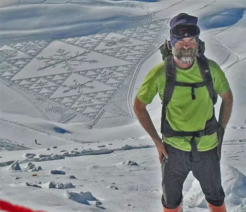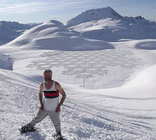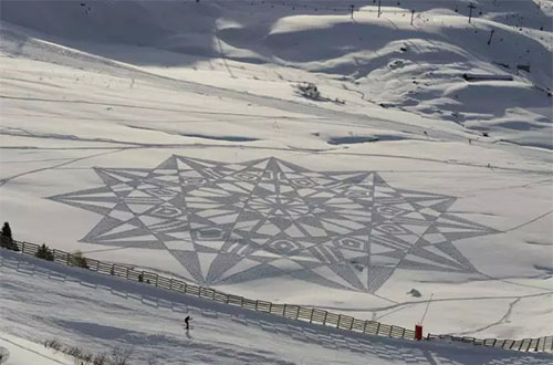 2004年,Simon Beck在雪地里滑了一天雪后心血來潮,突然在地上走出了一顆星星的形狀,到了滑雪場旅館樓上往下一看,他被自己的杰作帥倒了!