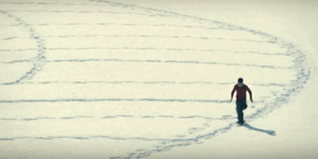 他就這樣用雙腳丈量著世界。在雪地里的每幅畫覆蓋的面積達到1至4公頃,需要走9到12個小時,走出的距離嘛,大約2萬至3萬米。