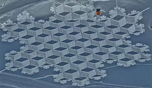 除了二維雪地圖案,他還有3D作品。這位牛津大學學霸的立體幾何應該學得不錯!