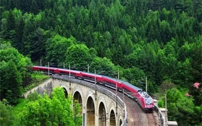 行程一小時的塞默林鐵路線從格洛格尼茨出發,途徑阿爾卑斯山的塞默林隘口,最終到達米爾茨楚施拉格。這條鐵路線于1854年完工,沿途共穿過16座高架橋和14條隧道。在TNT炸藥和隧道鉆孔機問世之前,它們可全都是手工開鑿的,真可稱得上是鐵路建造初期的土木工程杰作。