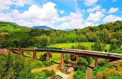 這趟縱貫澳洲大陸南北,行程兩天的列車穿越阿得萊德附近的灌木叢和牧場,克萊爾山谷的沙漠灌木和桉樹叢,鐵銹色的紅色中部地區,澳大利亞北端植物繁茂的熱帶地區,最后到達生活閑適的澳大利亞北領地首府達爾文。