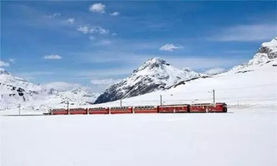 列車沿著世上最著名的高山窄軌鐵路一路行駛,從瑞士圣莫里茨的阿爾卑斯山冰川徑直開往棕櫚樹搖曳的意大利城市蒂拉諾。鐵路線沒有齒軌、齒輪和鋼索。夏季的時候,游客可以坐在敞篷車廂中享受2小時的車程。沒有車窗的阻隔,是個拍照的好機會。列車行駛過程中之字形的大轉彎會使車尾的乘客看到車頭朝著自己開來。鑒于此線路十分火爆,建議游客提前預訂車票,單程車票為57美元。