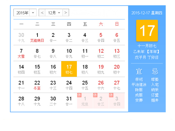 今天是2015年12月17日,星期四。