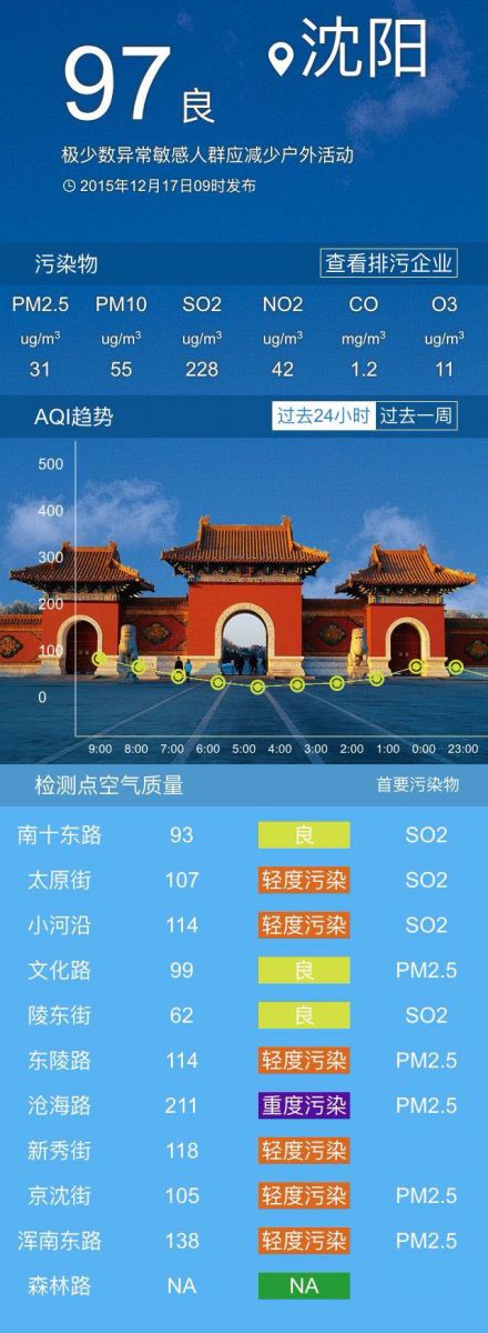 今天白天沈陽冷空氣勢力減弱,冰冷的空氣變得平靜下來,或多或少會影響到污染物的擴散和稀釋,但并不至于會出現討厭的霧霾。