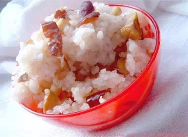 方法:將黨參和大棗用水同煎半小時,去掉黨參渣;用糯米蒸飯,將大棗鋪于飯上,將棗參湯加白糖煎為濃汁淋在飯上即可食用。